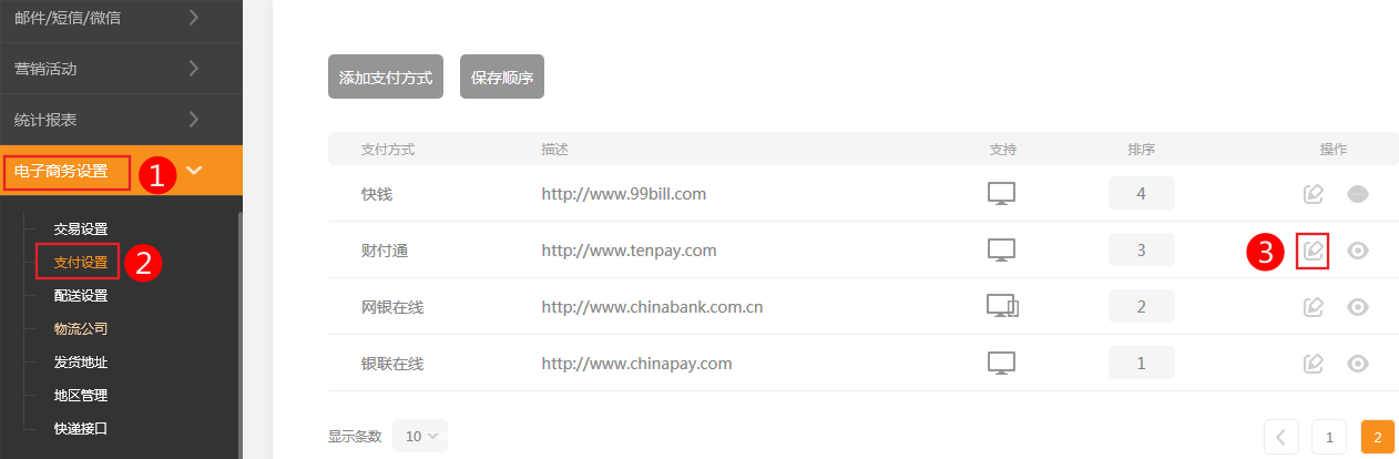 本小节共包含3点。1、通过本部分的操作,您可以为商店添加配送方式、配送时间段, 关闭配送时间段功能1、添加配送方式录入配送信息添加后启用即可,如图所示已经是启用状态了2、添加收货时间段。1.依次点击 电子商务设置-配送设置-收货时间设置 添加您需要的时间段 2.设置配送时间段,录入您需要的描述 3.添加后自动在收货时间设置列表中显示 4,前台展示效果。 3、如果不希望前台显示 收货时间怎么办,在操...